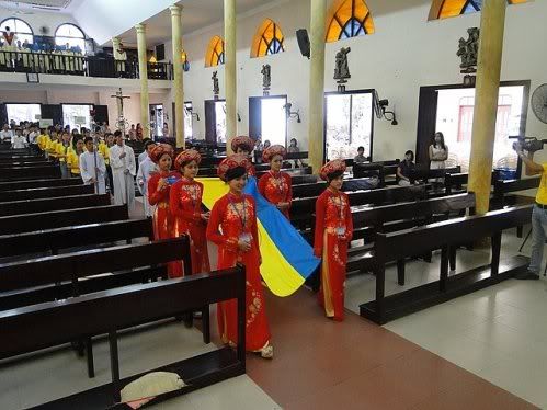 Mỗi một thánh lễ đều có những ý nghĩa riêng và sự cảm nhận riêng. Nhưng với Thánh lễ mừng Chân Phước hôm nay, sự trang nghiêm, sốt sắng và được gần gũi với Chúa thì quả là hạnh phúc cho những người tham dự. Đội dâng lễ vật với những gương mặt khôi ngô, tuấn tú, dễ thương với những bộ trang phục mang đậm nét truyền thống của dân tộc đã làm cho thánh lễ thêm phần long trọng và ý nghĩa hơn. Điều đặc biệt trong Thánh lễ hôm nay là hơn 1000 cuốn Kinh Thánh đã được các anh chị doanh nhân – trí thức tặng cho các em tân sinh viên.